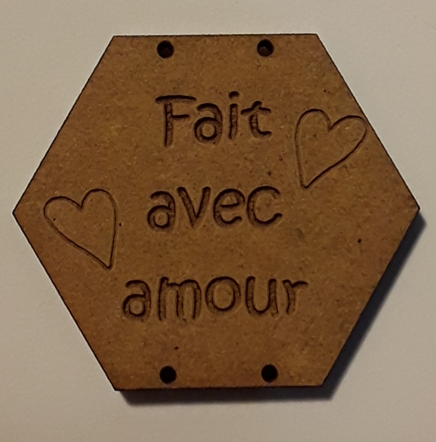 Bouton forme hexagone taille +/- 3.5 cm hauteur 3 cm, mdf nature