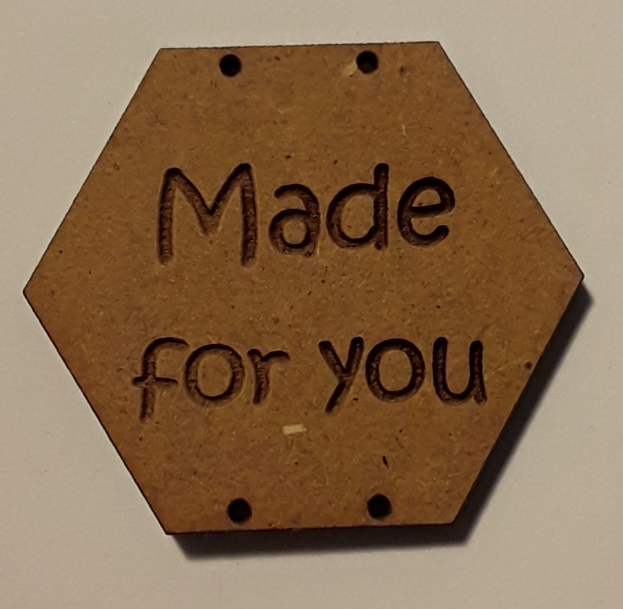 Bouton forme hexagone taille +/- 3.5 cm hauteur 3 cm, mdf nature
