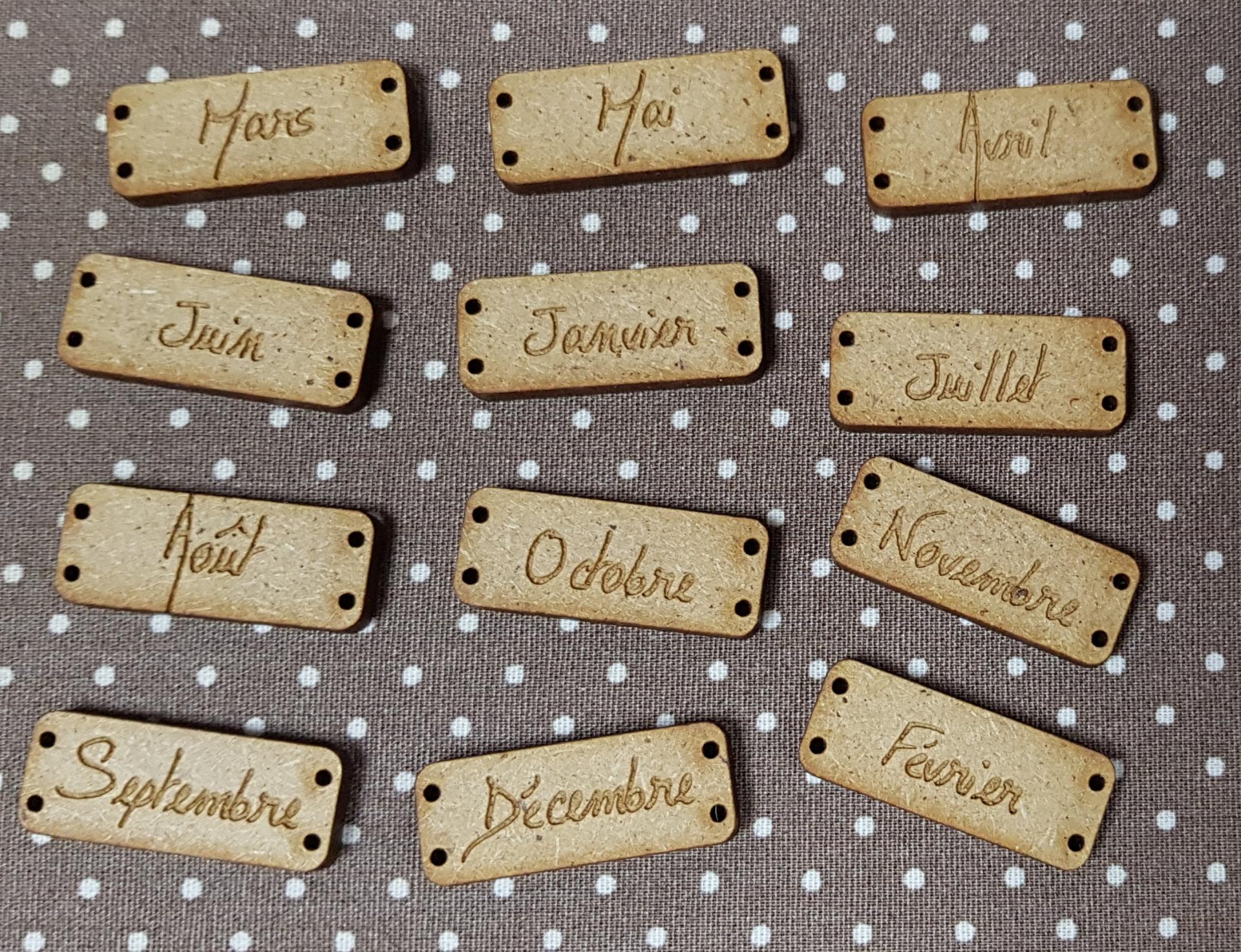 12 boutons mois de l'année, version 2, 25x10 mm, nature ou blanc, Création AL63