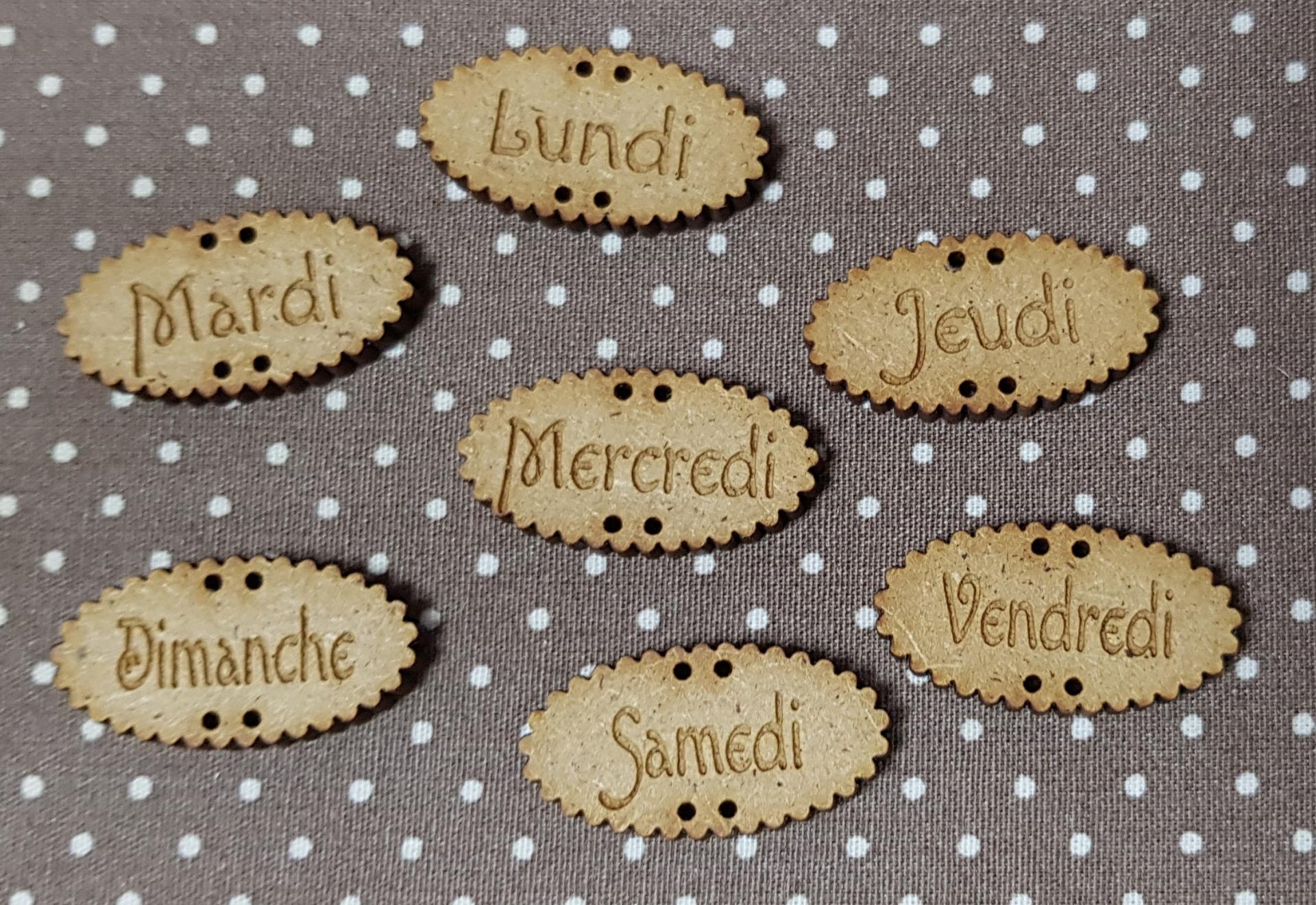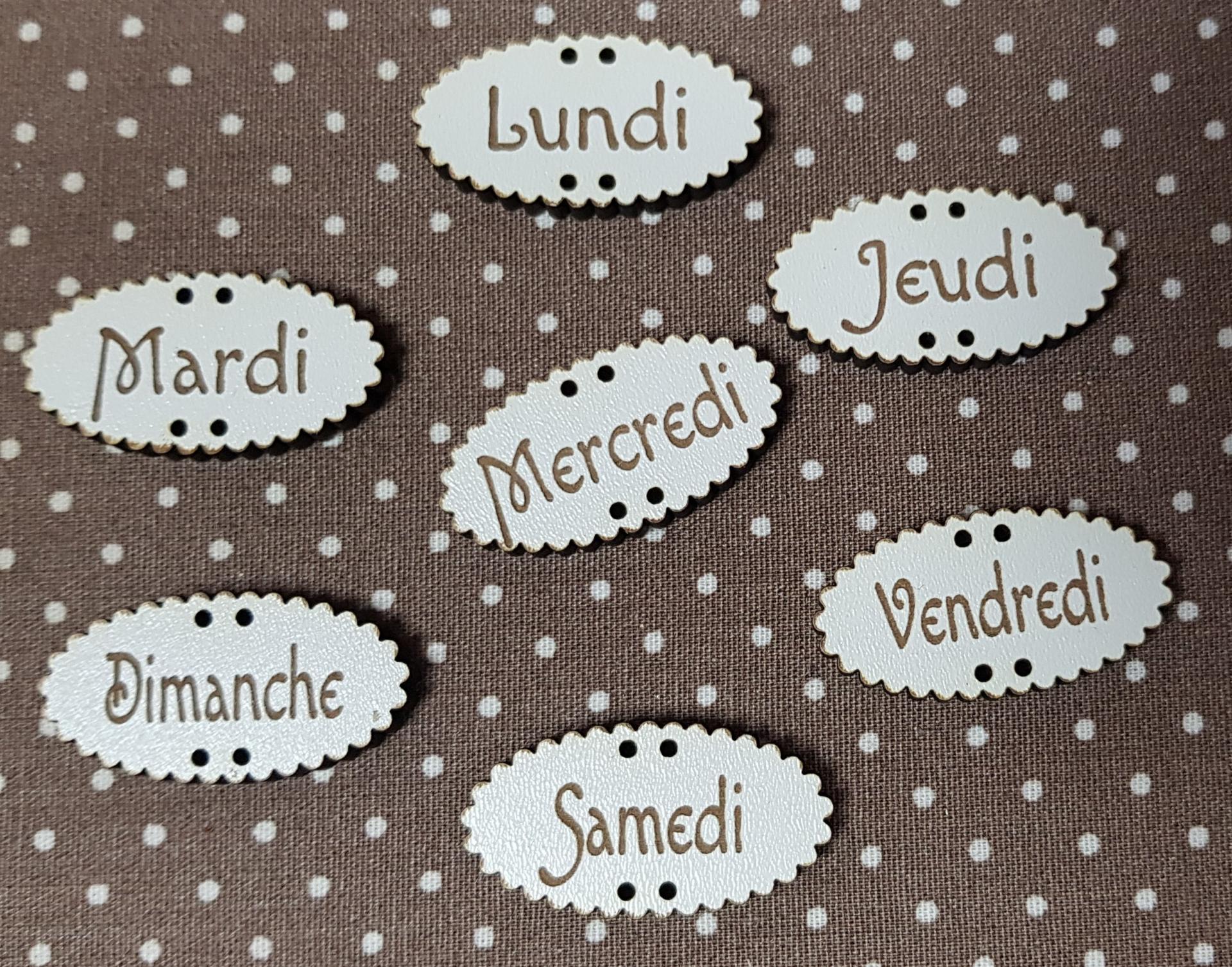 7 boutons jours de la semaine, 27 x 14 mm, naturel ou blanc, Création AL63