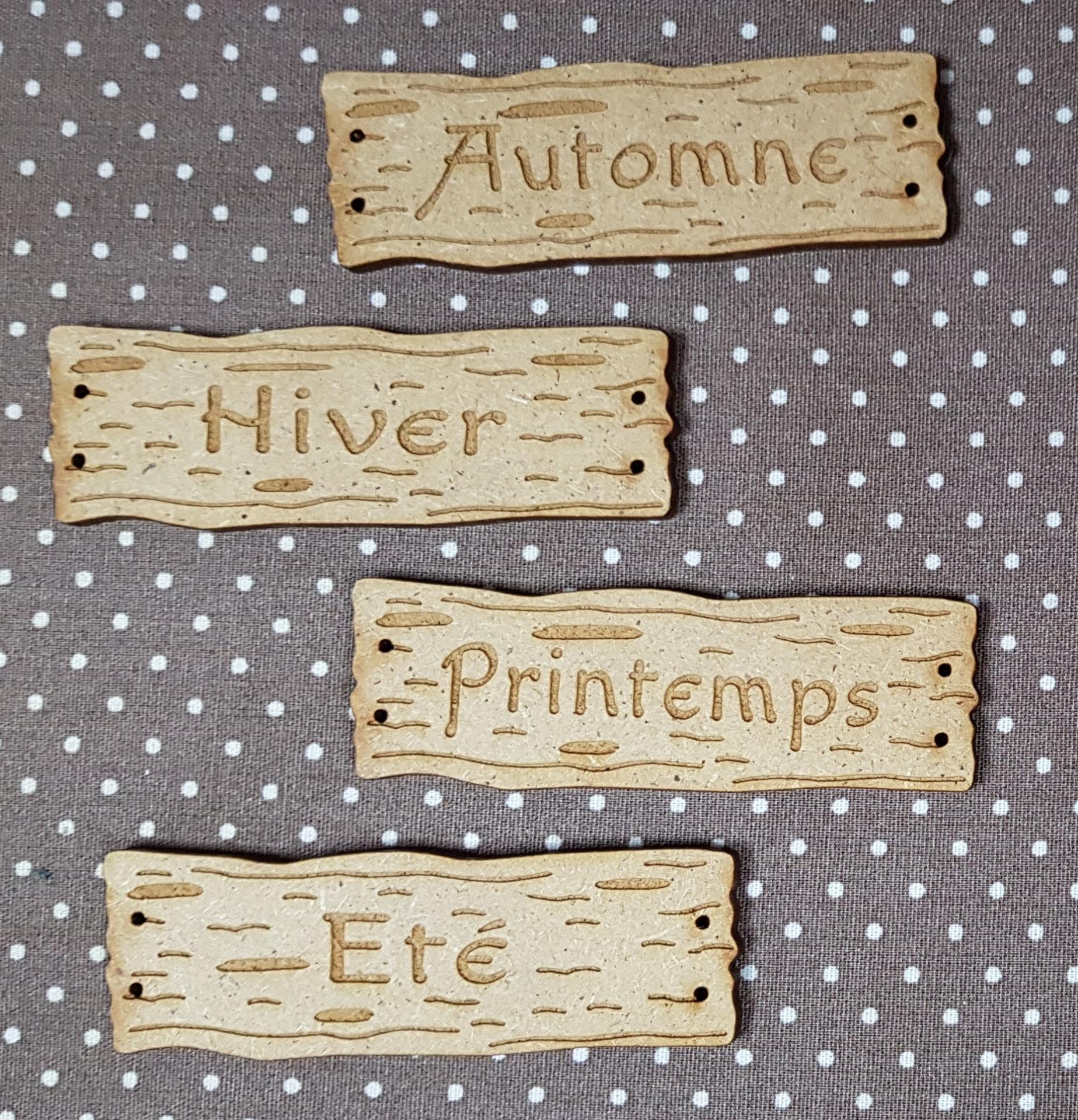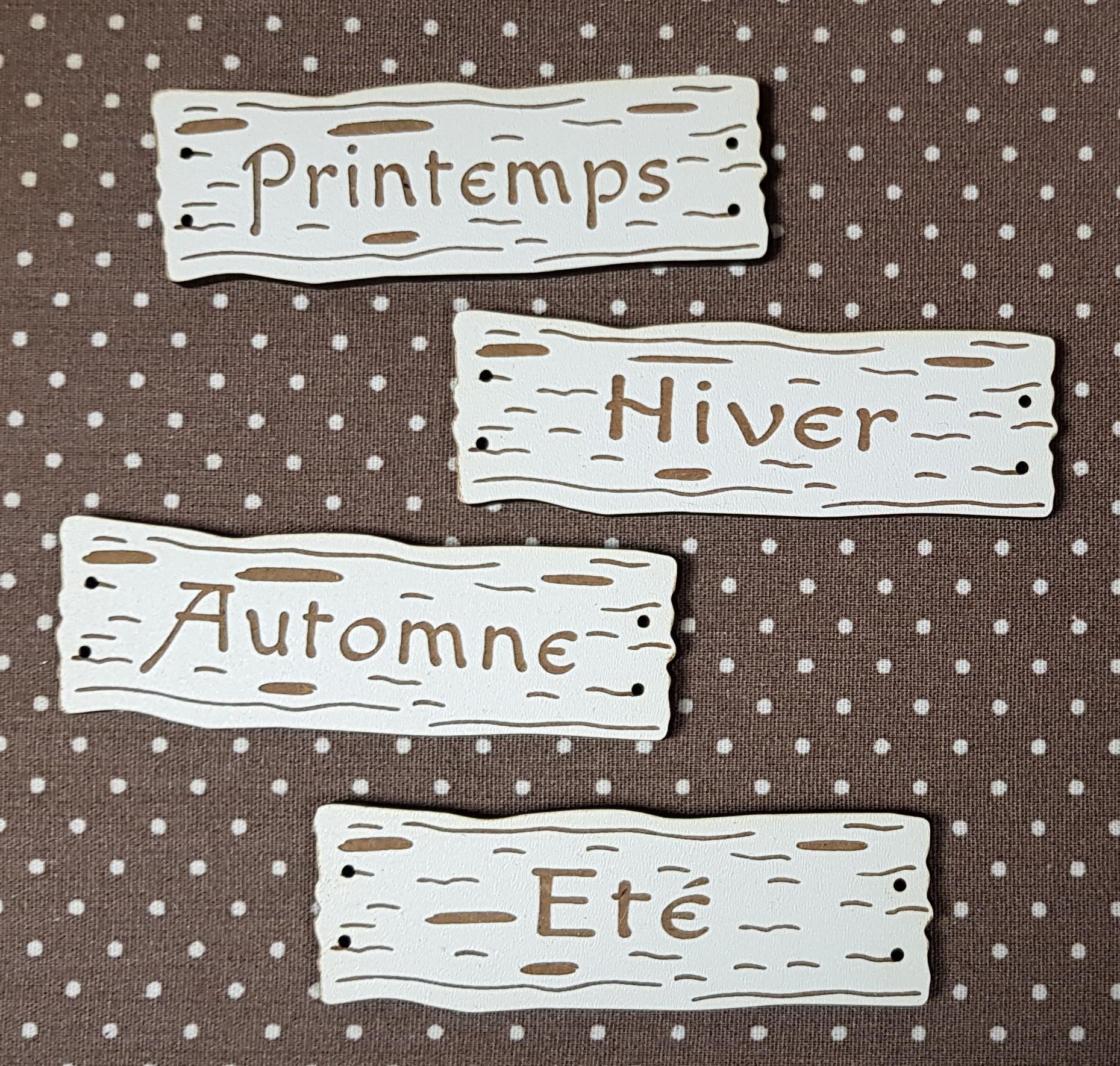 4 boutons 4 saison, deco grande planche 63x21 mm, nature ou blanc, création AL63