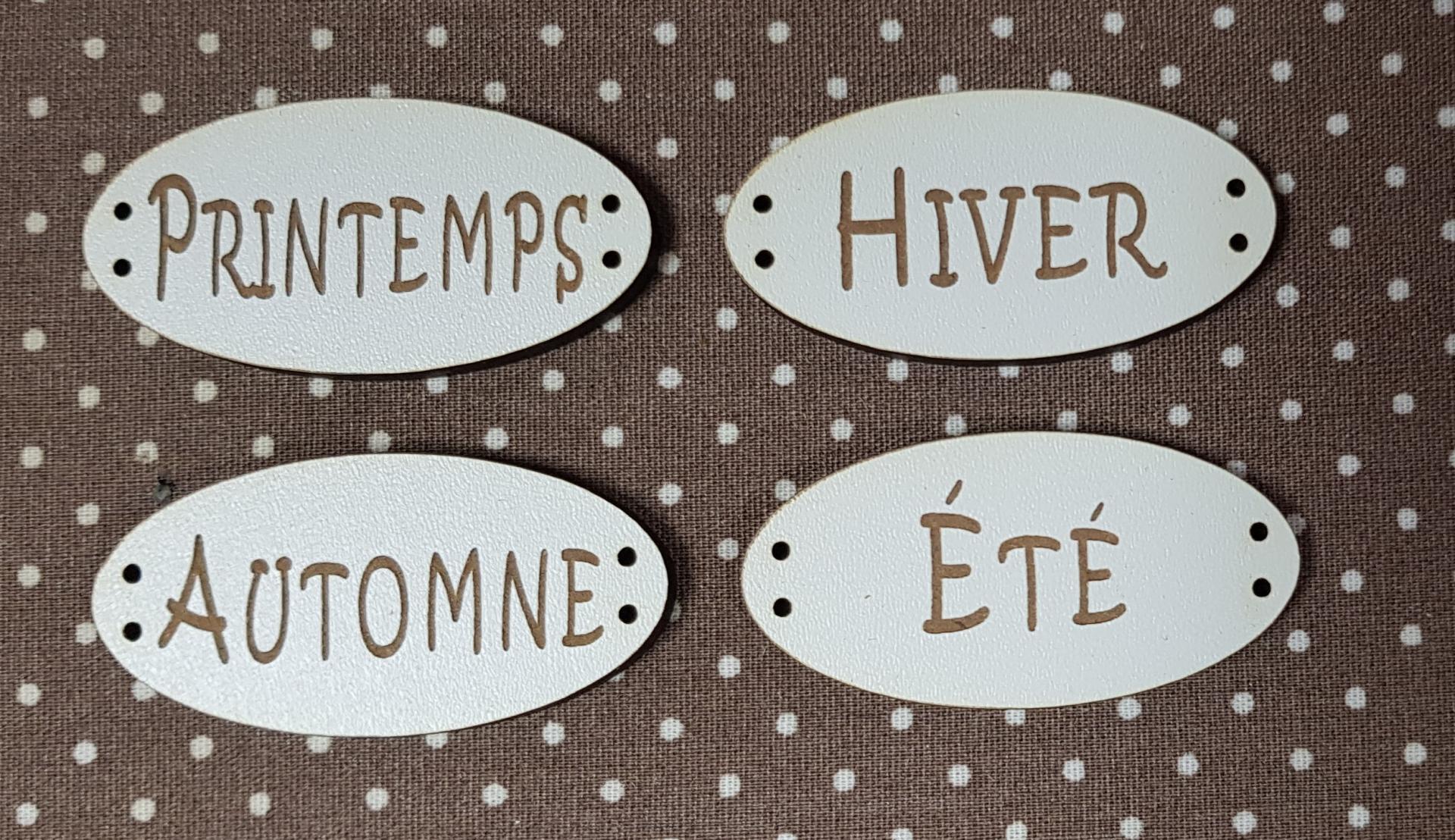 4 boutons 4 saisons, ovale, 40x20 mm, nature ou blanc, création AL63
