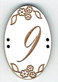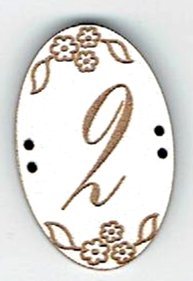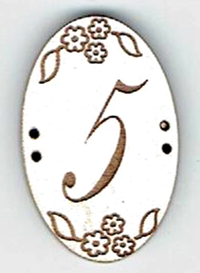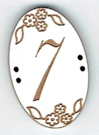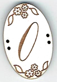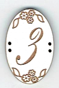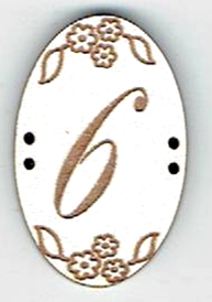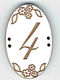 Chiffres en forme ovale, +/- 2x3 cm, 2x 2 trous, mdf laqué blanc, création AL63