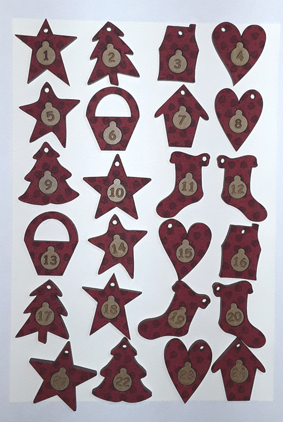 Calendrier de l avent, entissé ton rouge 24 boutons pampilles +/- 3,5 cm Création AL63