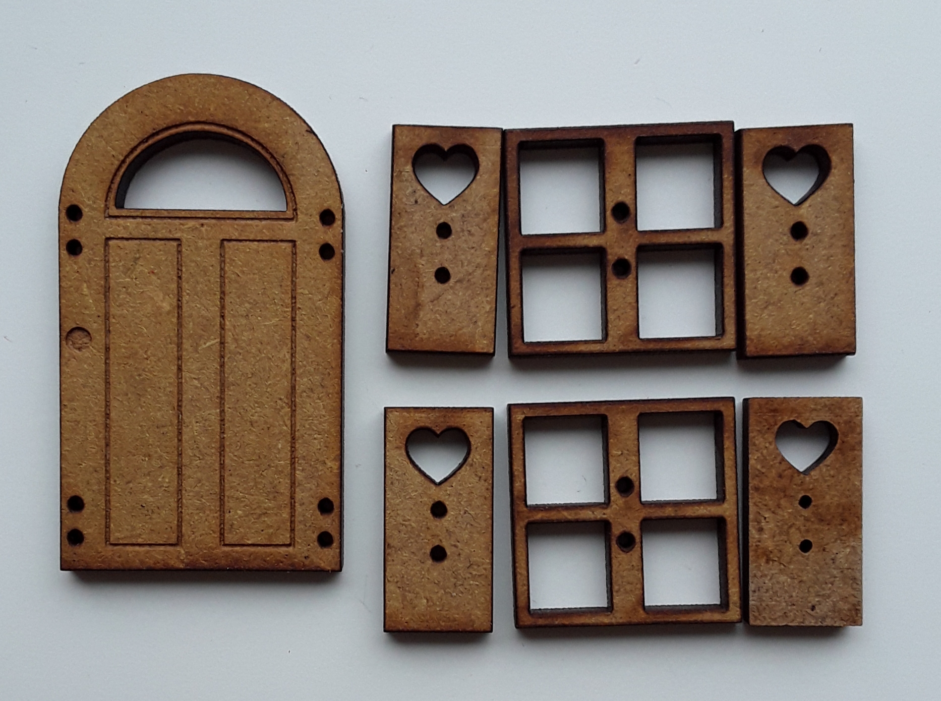 Lot 1 porte, 2 fenêtres, 2 volets petit, Taille porte 4,5 x 2,5 cm, fenêtre 2 x 2 cm, volet 2 x 1 cm