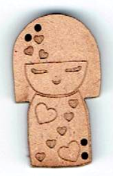 BD300- Bouton poupée japonaise coeur, Kokeshi