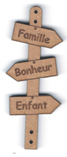 Bouton flèche Famille Bonheur Enfant, +/- 6 cm, laqué blanc ou naturel création AL63