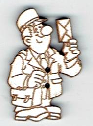 Bouton facteur, +/- 2.1 x 3 cm, naturel ou laqué blanc, création AL63