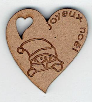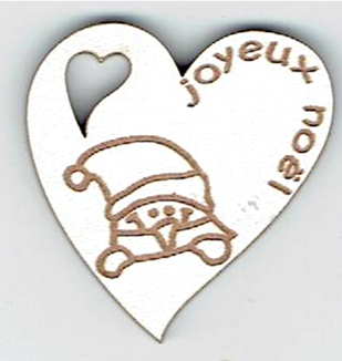 Étiquette cœur, lutin, +/- 3.6 x 3.9 cm, naturel ou laqué blanc, création al63