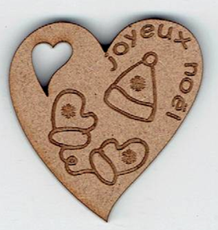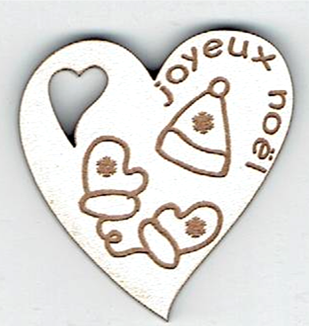 Étiquette cœur, bonnet et gants, +/- 3.6 x 3.9 cm, naturel ou laqué blanc, création al63