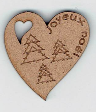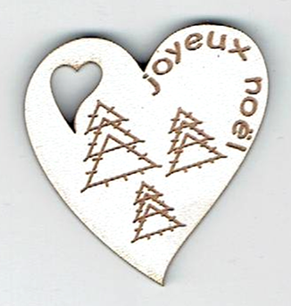 Étiquette cœur, sapins, +/- 3.6 x 3.9 cm, naturel ou laqué blanc, création al63