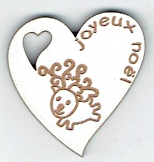 Étiquette cœur, petit renne, +/- 3.6 x 3.9 cm, naturel ou laqué blanc, création al63