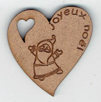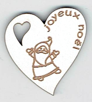 Étiquette cœur, père noël, +/- 3.6 x 3.9 cm, naturel ou laqué blanc, création al63