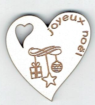 Étiquette cœur, boules, +/- 3.6 x 3.9 cm, naturel ou laqué blanc, création al63