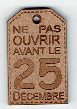 Étiquette "Ne pas ouvrir avant le 25 décembre", +/- 2.5 x 4 cm, naturel ou laqué blanc, création AL63