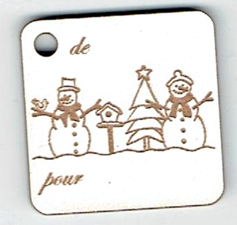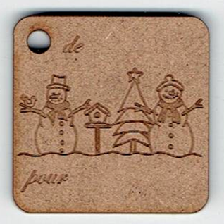 Étiquette cadeau, famille de bonhomme de neige, 3.5 x 3.5 cm, naturel ou laqué blanc, création AL63
