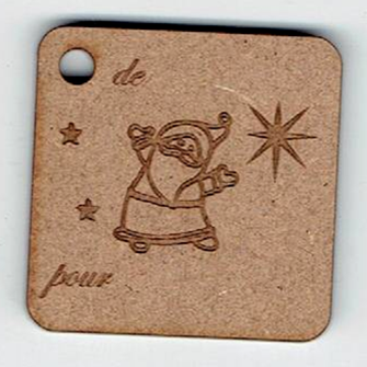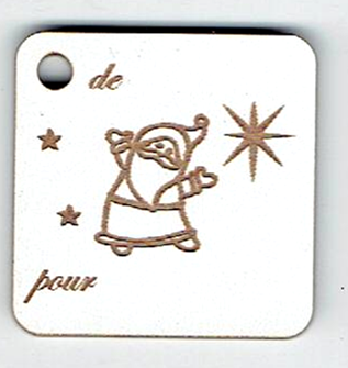 Étiquette cadeau, père noël, 3.5 x 3.5 cm, naturel ou laqué blanc, création AL63