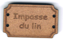 Bouton style plaque de rue, Impasse du lin, +/- 2,5 cm, laqué blanc ou naturel création AL63