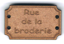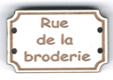 Bouton style plaque de rue, Rue de la broderie, +/- 2,5 cm, laqué blanc ou naturel création AL63