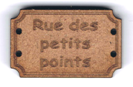 Bouton style plaque de rue, Rue des petits points, +/- 2,5 cm, laqué blanc ou naturel création AL63