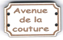 Bouton style plaque de rue, Avenue de la couture, +/- 2,5 cm, laqué blanc ou naturel création AL63
