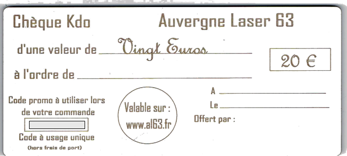 A offrir ou se faire offrir, pour faire et se faire plaisir Le chèque Kdo est réalisé en MDF Blanc avec un marquage bois, taille 17.5 x 8 cm, il ne vous reste plus qu'à le compléter avec un feutre permanent. Envoyé avec un code permettant les achats sur le site uniquement. Pour un montant spécifique, nous contacter.