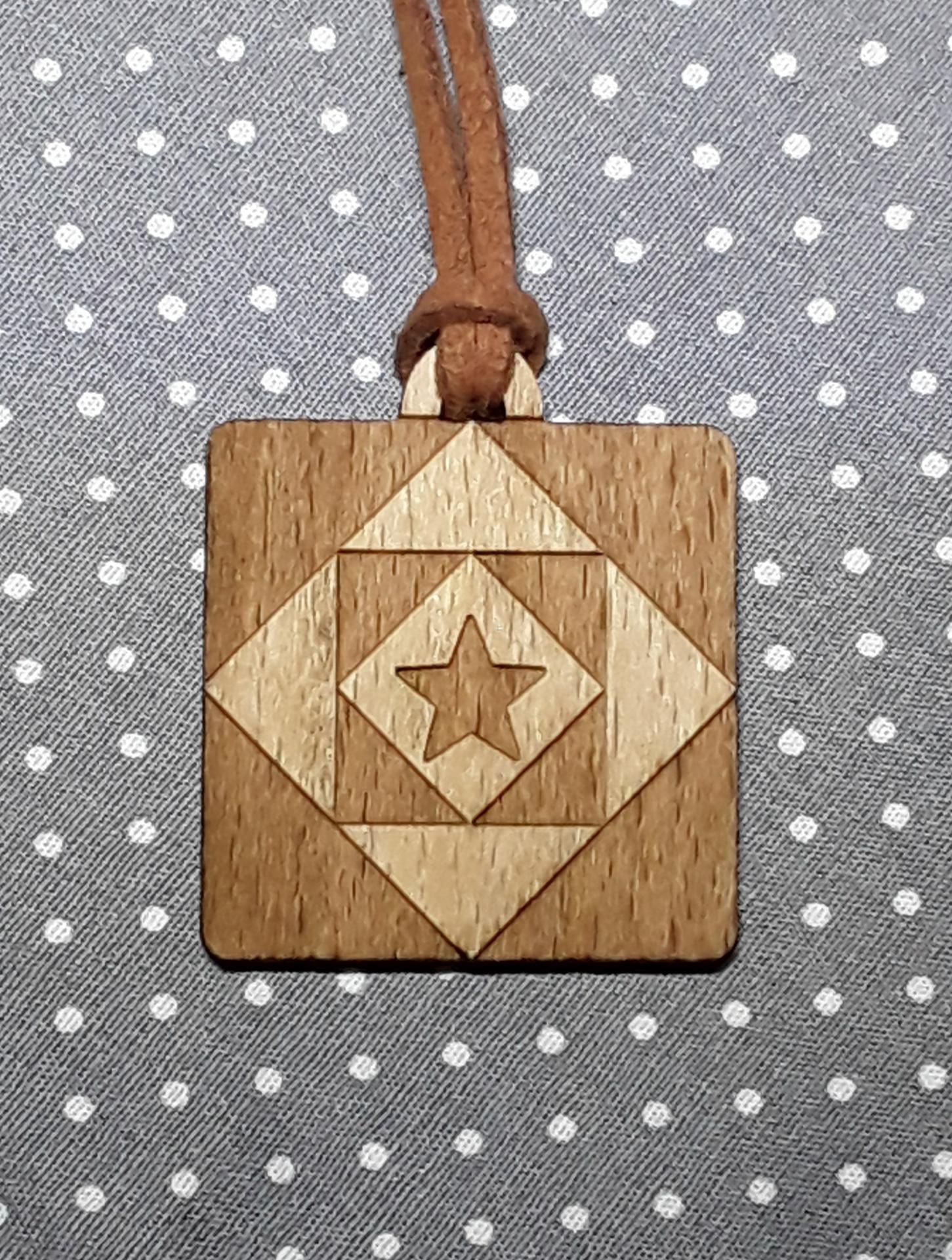 Collier avec médaille en hêtre brut, 3,5 cm Création AL63