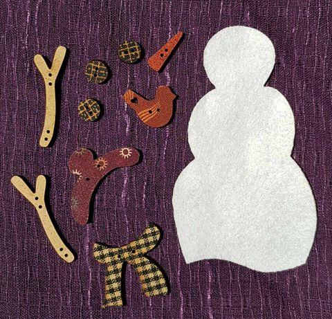 Lot bonhomme de neige en feutrine blanche avec ses 9 boutons, version béret