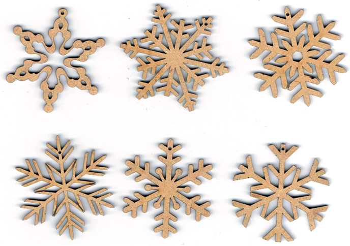 Lot de 6 flocons de neige en mdf naturel, peut être peint, vernis. Taille des flocons +/- 5,5 cm Création AL63