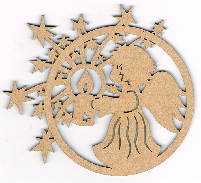 Décoration de noël : ange étoilé, en mdf naturel, peut être peint, vernis. Décliné en 3 tailles : 12, 21, 30 cm. Création AL63.