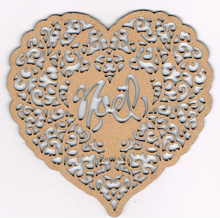 Décoration de noël : Coeur et dentelles, en mdf naturel, peut être peint, vernis. Décliné en 3 tailles : 12, 21, 30 cm. Création AL63.