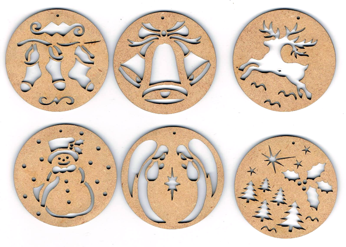 Lot de 6 décoration de noël, en mdf naturel , peut être peint, vernis. création AL63.