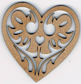 Déco noël, arabesque coeur, en mdf naturel, peut être peint, vernis. +/- 8 cm, création AL63.