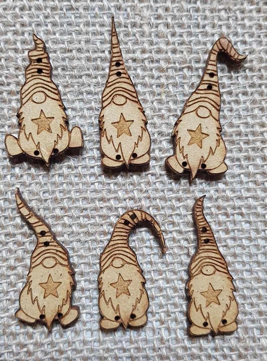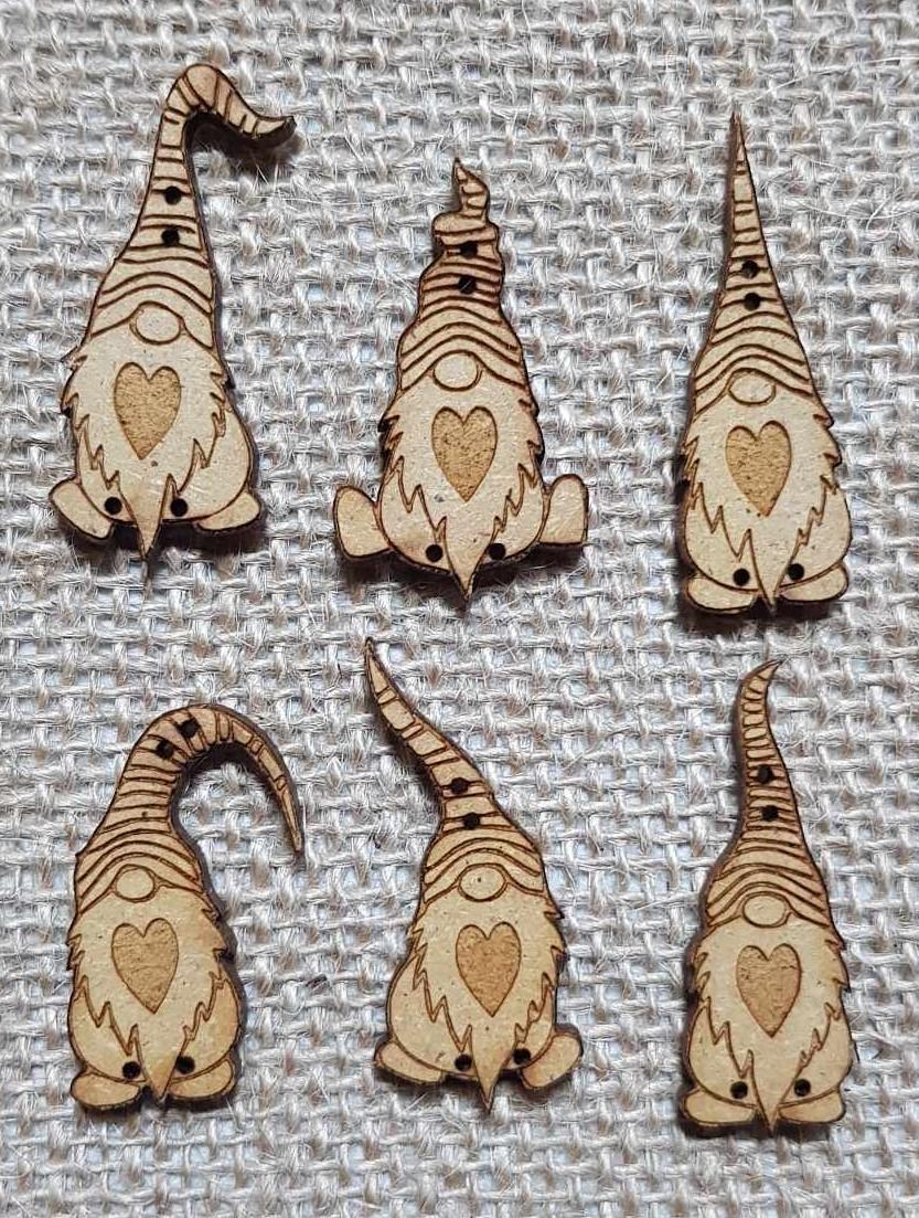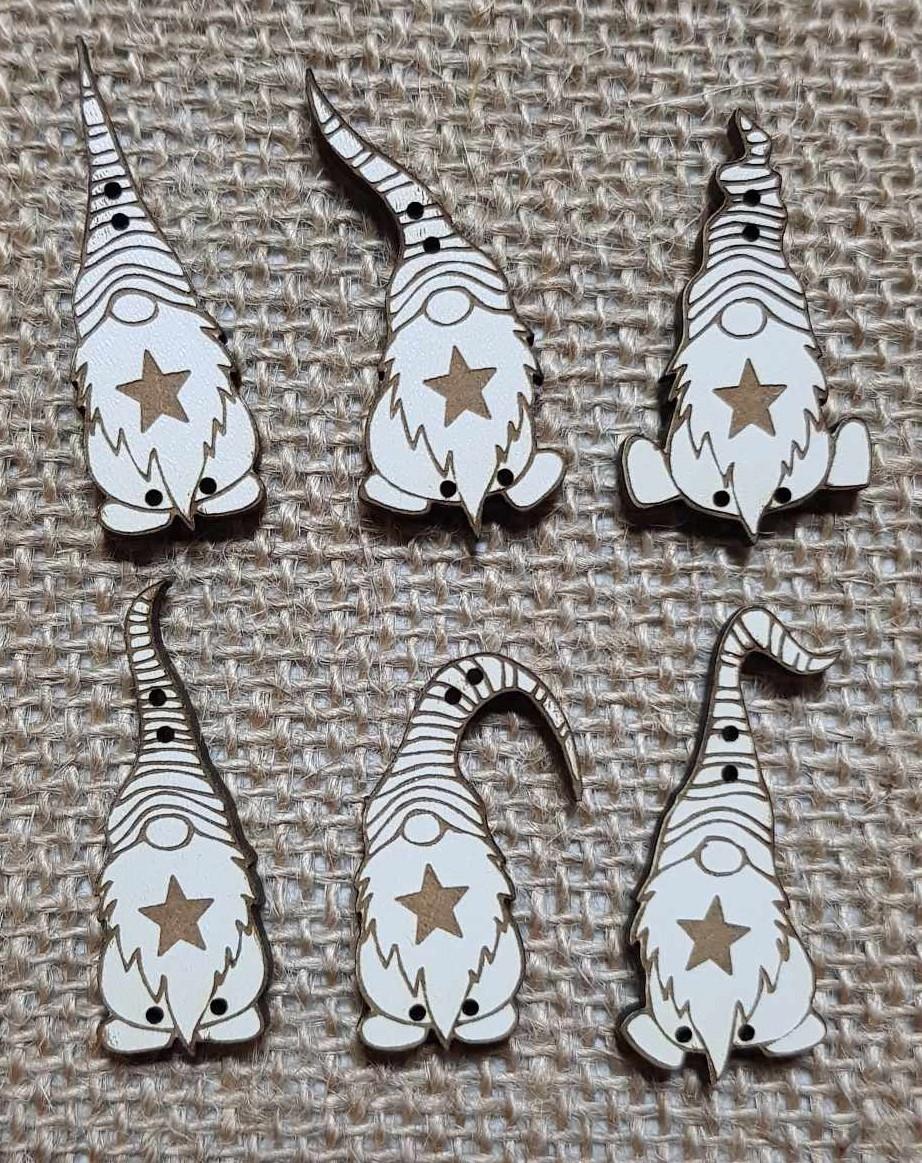 Lot de 6 boutons Gnomes, +/- 3,5 x 2 cm, 6 modèles differents, disponible en blanc ou naturel, version coeur ou étoile, création AL63
