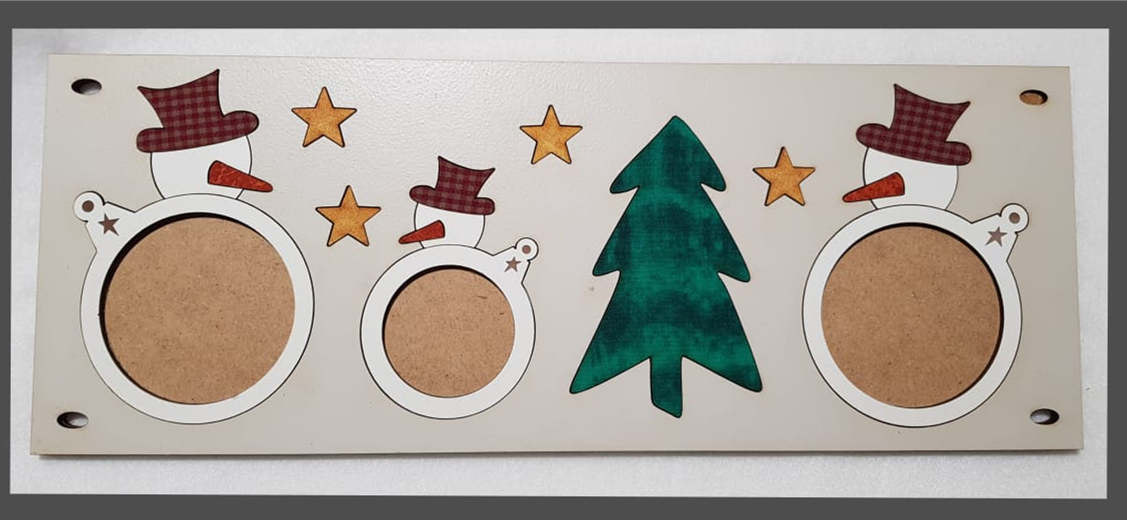 Tableau bohommes de neige 40 x 15 cm, 3 cadres ronds dans les ventres des bonhommes de neige, à remplir selon vos envies, patchwork, broderie.... 2 cadres de 7 cm et 1 cadre de 5 cm, support interieur des cadres fournis. Création AL63